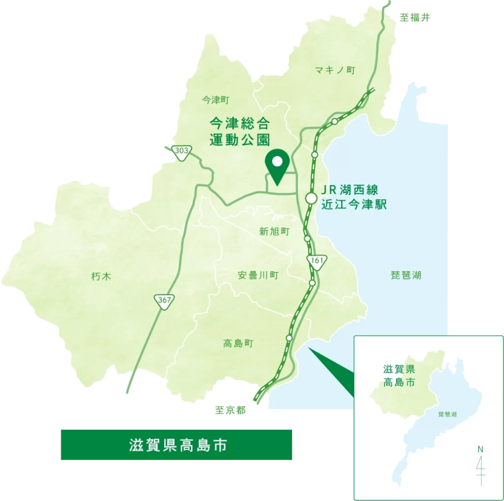 〒520-1655 滋賀県高島市今津町日置前3110(高島市今津総合運動公園内)